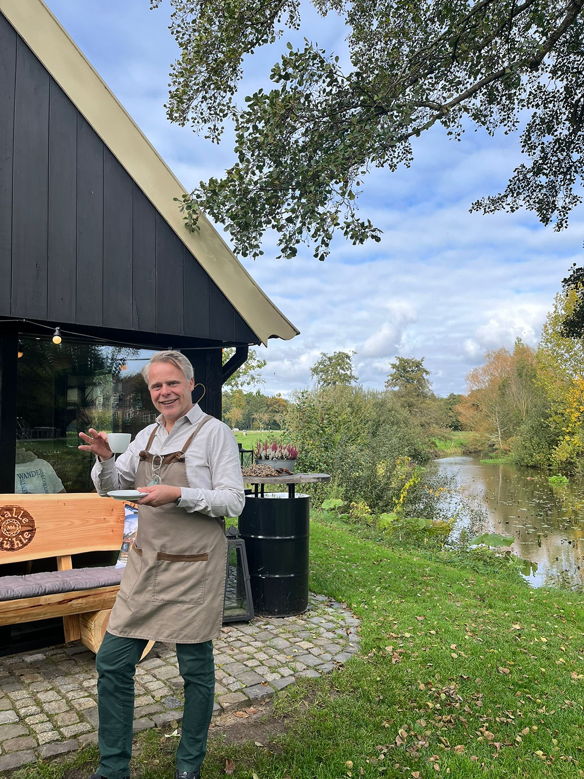 Echter, ik zag bij het pand dat het gras hoog stond en dat het gesloten was. Toen zei ik tegen mijn vrouw: wij gaan de horeca in. Zo gezegd heb ik contact opgenomen met Stichting Twickel en zijn we met hen om tafel gegaan. Vervolgens zijn we gestart met de verbouwing, welke ongeveer 2 jaar geduurd. In de zomer van 2022 konden we uiteindelijk van start. Tevens runnen we een B&B in het Molenaarshuis aan overkant, deze dateert uit circa 1840.
